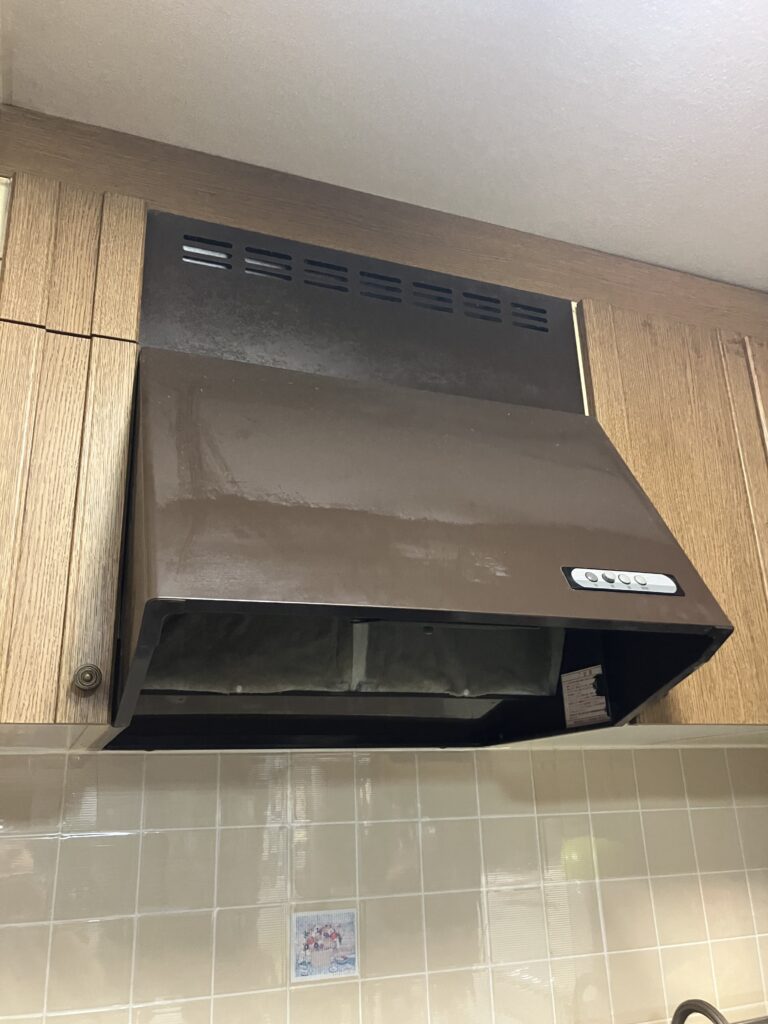 こちらのレンジフードはキッチンに設置されていました。型番は不明でしたが、長い間使用されていて、年数が経過している印象を受けました。