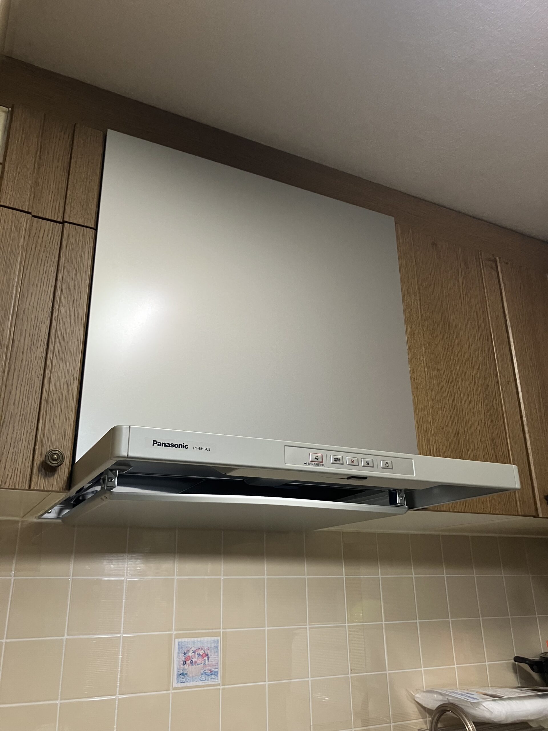 今回取り付けさせていただいたのは「FY-6HGC5-S」です。私たちがお勧めする高性能なレンジフードで、静音設計でありながらも吸引力が強く、キッチンの空気をしっかりと換気してくれます。