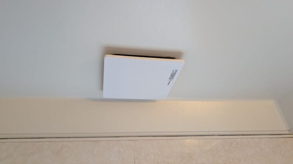 そのような場合、天井点検口を開くと換気扇が吊り下げられている可能性が高いです。その換気扇を交換することになります。